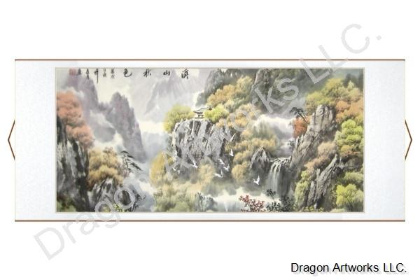 In Chinese landscape paintings, autumn symbolizes prosperity and harvest; flying cranes represents a long and happy life. Chinese Landscape Painting of Streams and Mountains in Autumn combines all these elements together to bless residents.