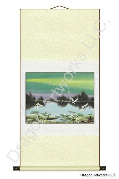 Chinese like cranes very much. In Chinese culture, they symbolize wisdom and peace. In the cranes in wetland Chinese landscape painting, you see the cranes are flying happily, meaning to bring peace and wisdom to the owner of the painting.