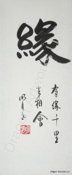 This Chinese symbol for Fate calligraphy painting was painted on white rice paper and is 4 inches wide and 10 inches tall.The Chinese symbol for Fate shown in this image is a 100% hand painted artwork, and is sealed by the calligraphy artist. The frame shown is for illustration only, and IS NOT included with the Chinese symbol for Fate painting shown. The frame surrounding this calligraphy painting is meant only to demonstrate how nice this artwork could look after it is framed by you or your local frame shop. This Fate symbol calligraphy painting is mounted on white poster board suitable for framing. This symbol for Fate calligraphy painting was painted on white Chinese rice paper, the painting is 4 inches wide and 10 inches high and has a total size of 6 x 12 inches including the white poster board backing material. The white poster board is about 1 inch larger than the calligraphy painting, and includes a printed black border which surrounds the the Fate calligraphy painting, so it is ready to be framed in a standard 6x12 inch frame. I have personally used 6x12 inch frames purchased at dollar stores for $1 and the resulting framed artworks were excellent. To view examples of how these calligraphy artworks can look framed, click the link below.