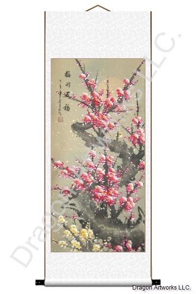 You may receive a pink yellow plum blossoms Chinese painting scroll slightly different from the picture you see, because it is a hand painted artwork by a talented Chinese artist.