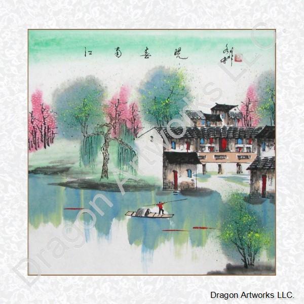 If you are looking for something to decorate your home, the waterscape Chinese brush painting of southern China is your choice. It depicts a very nice scene in spring with plum blossoms, a very hopeful scene that everybody likes.