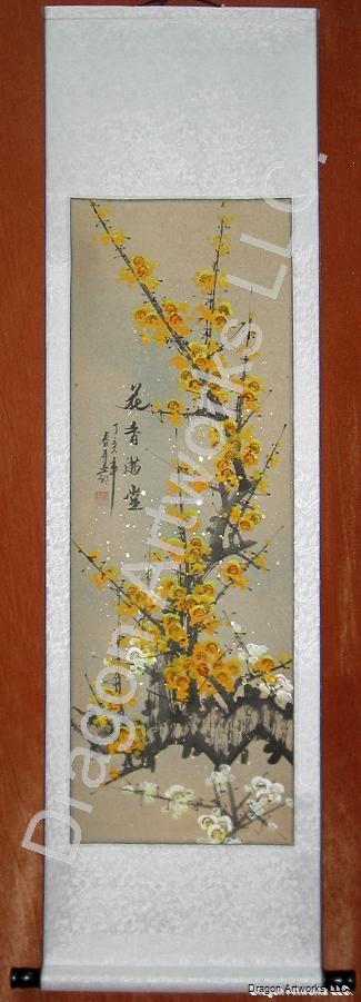 You may get this yellow plum blossoms Chinese painting scroll slightly different from the picture you see. Because it is hand painted by a talented Chinese artist.